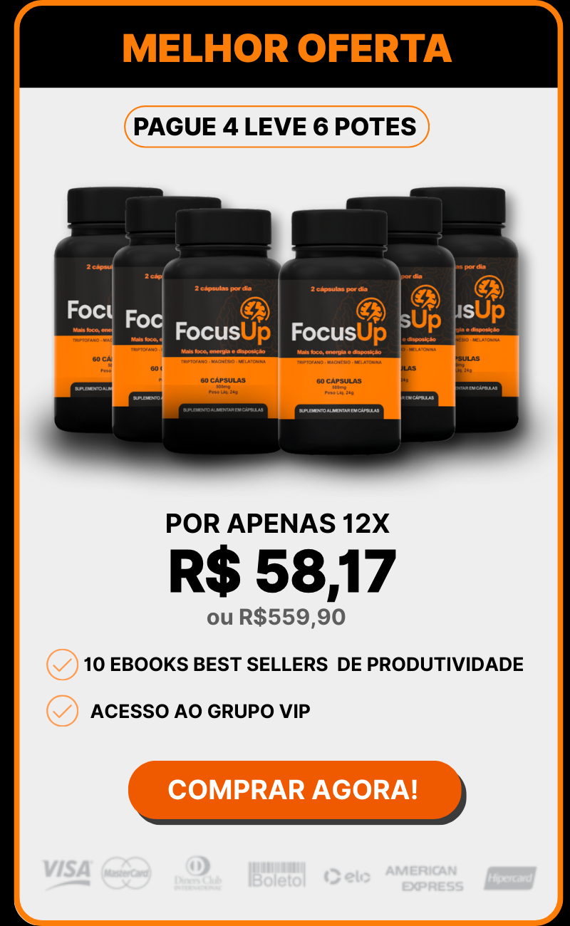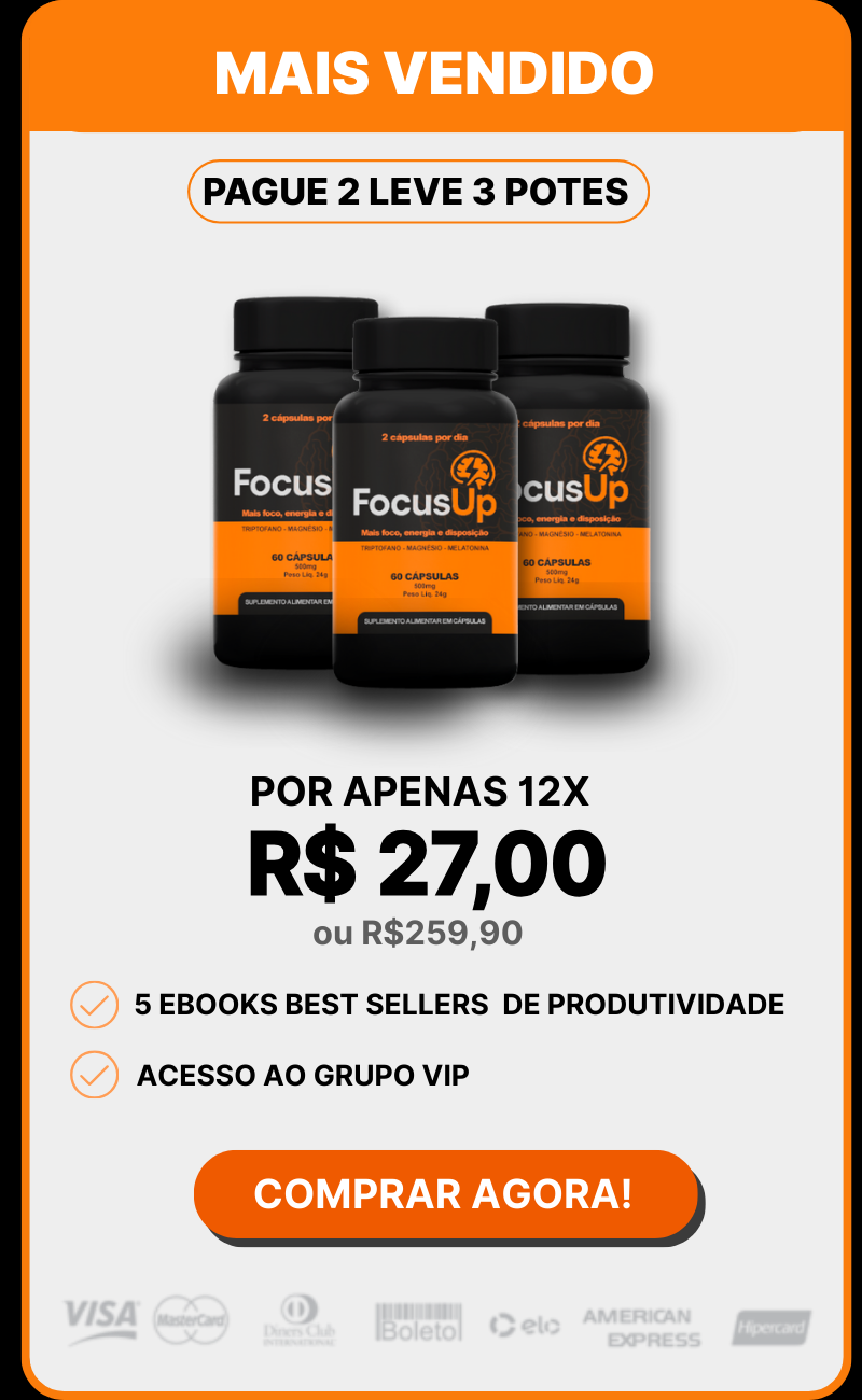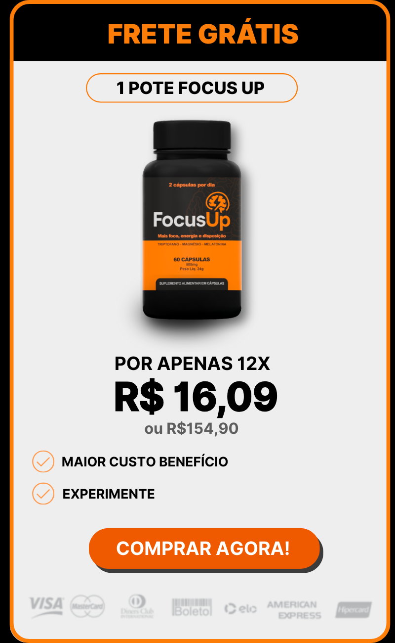 O Focus Up é um suplemento formulado para melhorar o foco, a concentração e a disposição no dia a dia.